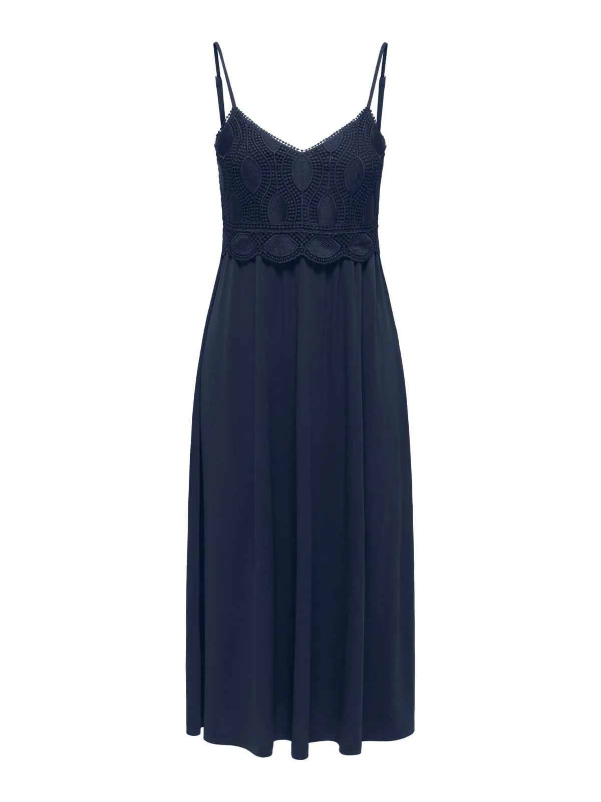 Design: Gevoerde zoom/rand, Diepe snit/decolleté, Elastische inzetstukken; Materiaal: Gerecycled materiaal; Halstype: V-hals; Motief: Effen; Soort bandjes: Spaghettibandjes; Details: Ruches, Kant, Gedrapeerd; Extra's: Verstelbare bandjes, Gladde stof; Lengte: 3/4 lengte; Snit: Getailleerd; Pasvorm: Normale pasvorm; Armlengte: Mouwloos