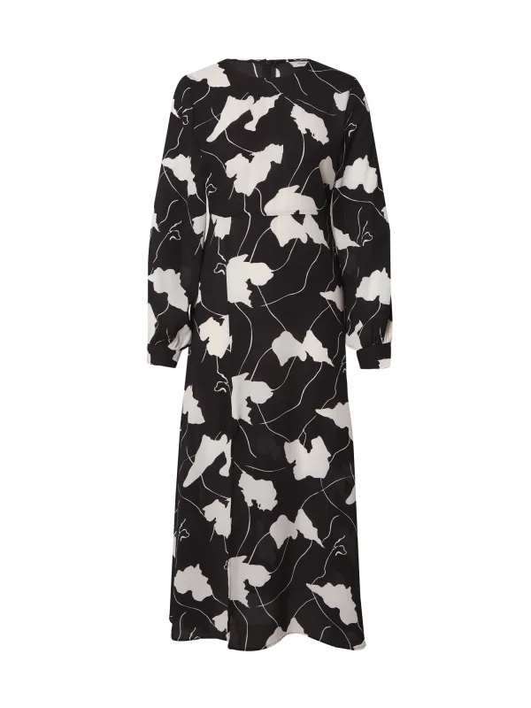 Design: 1-knoops manchetten, Gevoerde zoom/rand, Beenopening, Rug rits; Type sluiting: Ritssluiting; Materiaal: Gerecycled materiaal; Halstype: Ronde hals; Details: Gedrapeerd; Extra's: All-over patroon, Gladde stof; Lengte: 3/4 lengte; Snit: Getailleerd; Pasvorm: Normale pasvorm; Armlengte: Lange mouw