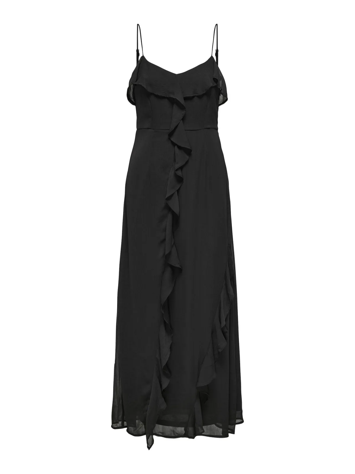 Design: Gevoerde zoom/rand; Halstype: V-hals; Motief: Effen; Soort bandjes: Spaghettibandjes; Details: Volant; Extra's: Gladde stof; Lengte: Lang/maxi; Snit: Getailleerd; Pasvorm: Normale pasvorm; Armlengte: Mouwloos