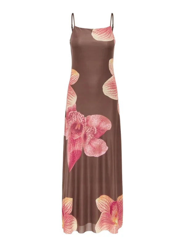 Design: Rechte zoom, Met onderjurk; Halstype: Carréhals; Motief: Bloemenprint; Soort bandjes: Spaghettibandjes; Extra's: Licht transparant, Verstelbare bandjes, Gladde stof; Lengte: 3/4 lengte; Snit: Getailleerd; Pasvorm: Slanke pasvorm; Armlengte: Mouwloos