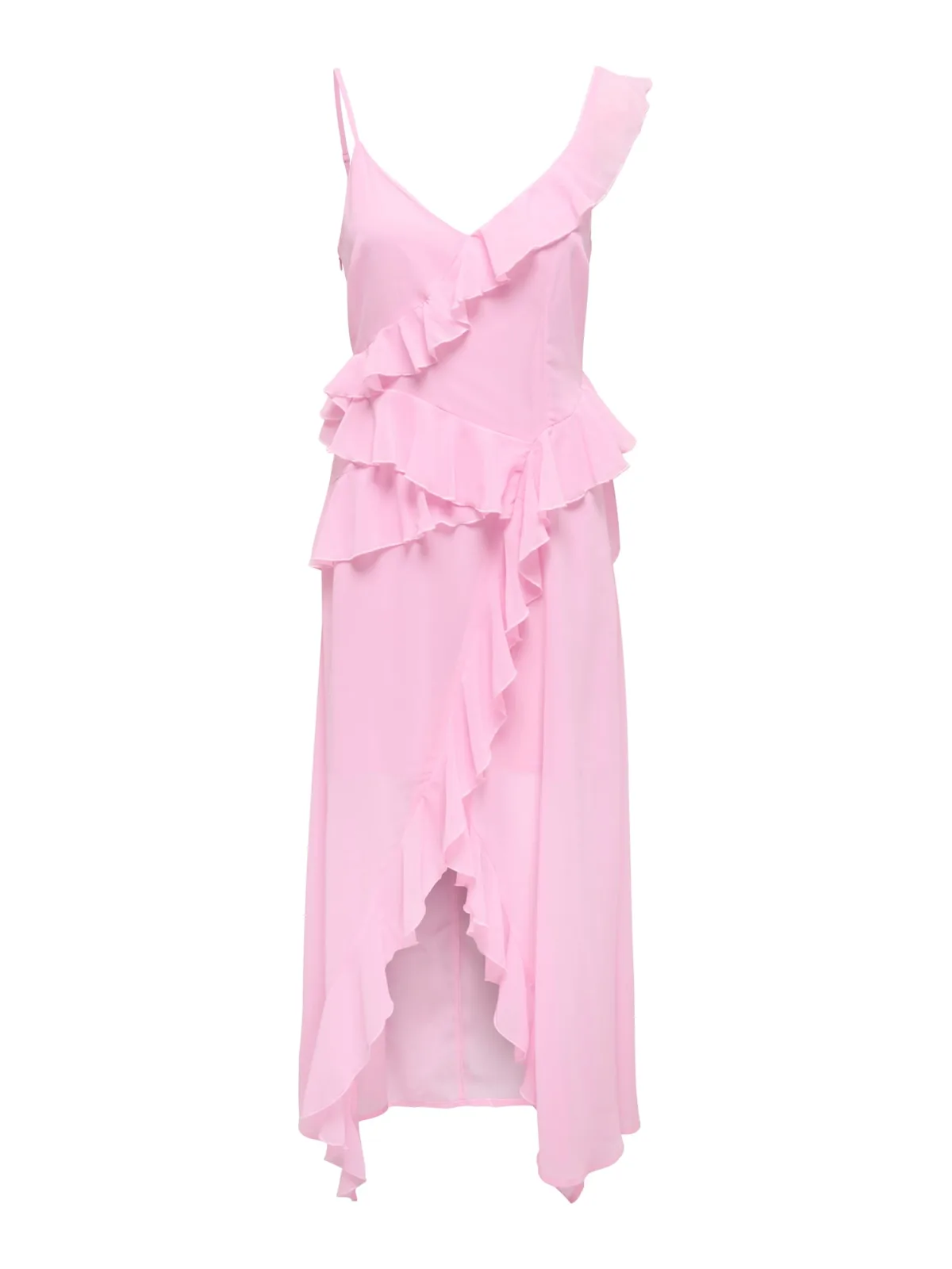 Design: Gevoerde zoom/rand; Halstype: V-hals; Motief: Effen; Soort bandjes: Brede bandjes; Details: Volant, Gedrapeerd; Extra's: Op staal naden; Lengte: Lang/maxi; Snit: Uitlopend; Pasvorm: Normale pasvorm; Armlengte: Mouwloos