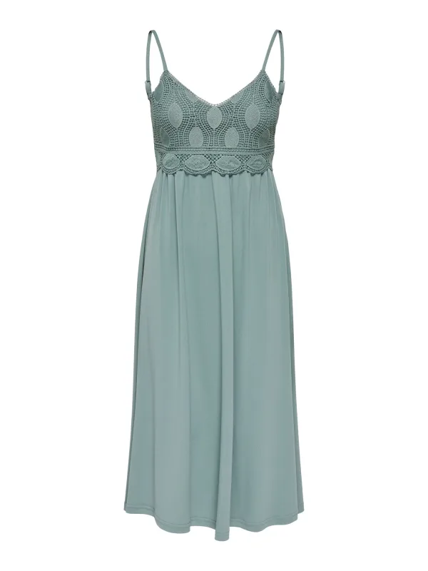 Design: Gevoerde zoom/rand, Diepe snit/decolleté, Elastische inzetstukken; Materiaal: Gerecycled materiaal; Halstype: V-hals; Motief: Effen; Soort bandjes: Spaghettibandjes; Details: Kant, Gedrapeerd, Backless; Extra's: Verstelbare bandjes, Gladde stof; Lengte: 3/4 lengte; Snit: Getailleerd; Pasvorm: Normale pasvorm; Armlengte: Mouwloos
