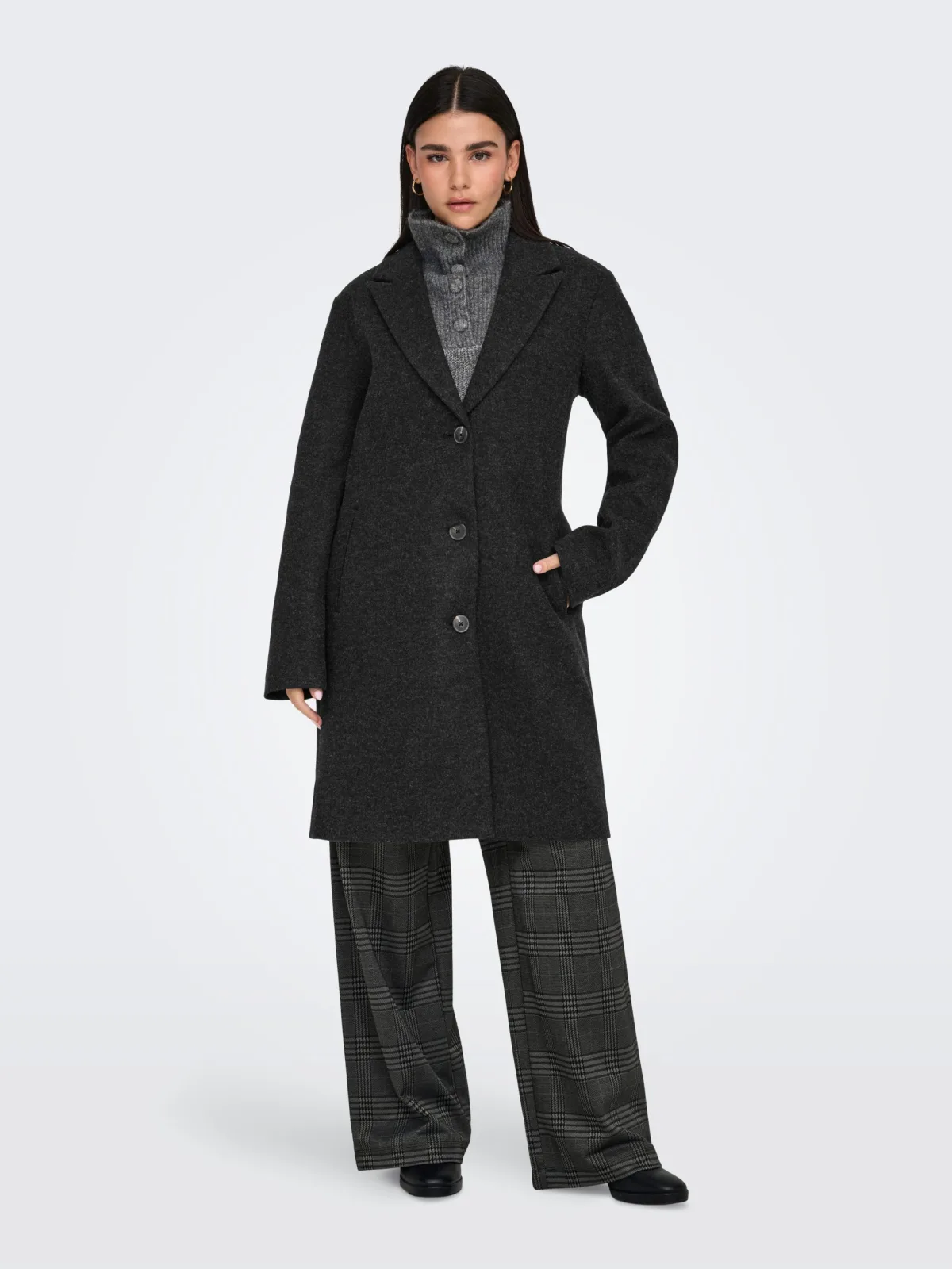 Type mantel: Klassieke mantel; Design: Knop placket, Revers kraag, Zakken aan de zijkant; Type sluiting: Knoopsluiting; Voering: Licht gevoerd; Motief: Mélange; Extra's: Buigzame grip; Pasvorm: Normale pasvorm; Lengte: Normale lengte