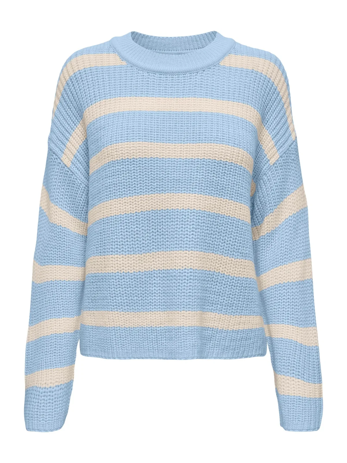 JDY Oversized trui ‘JDYJUSTY’ lichtblauw / natuurwit Prijzen