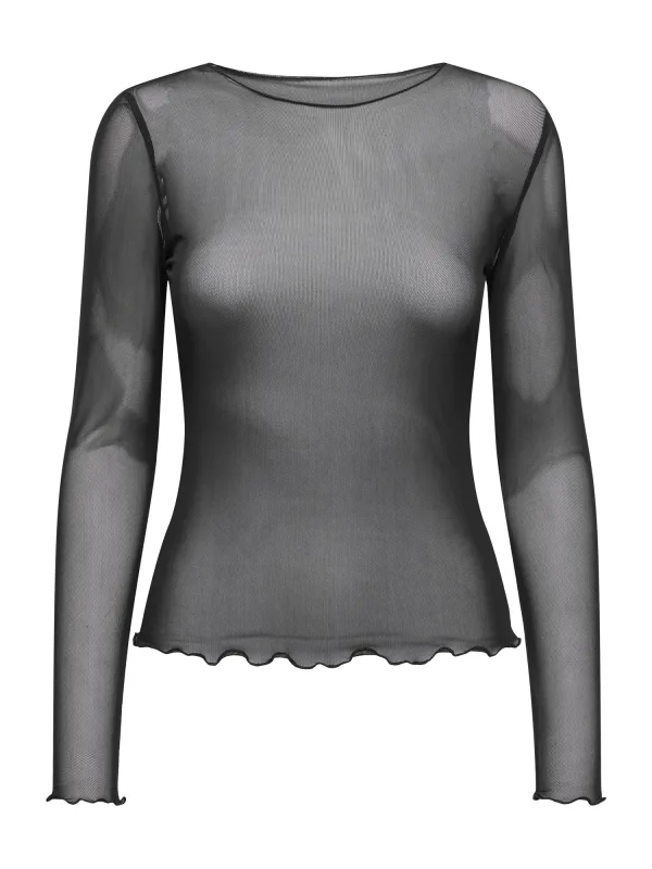Design: Geschulpte zoom; Halstype: Ronde hals; Motief: Effen; Extra’s: Transparant, Lichte stof; Pasvorm: Slanke pasvorm; Armlengte: Lange mouw; Lengte: Normale lengte