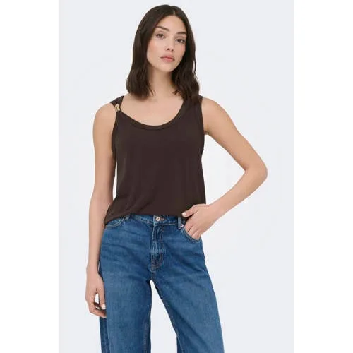 Deze mouwloze top voor dames van JDY is een veelzijdige basic voor elke dag. De donkerbruine kleur geeft je outfit meteen een warme en moderne uitstraling, terwijl de hoge, ronde hals zorgt voor een nette en verzorgde look. De top sluit mooi aan op het lichaam en valt normaal, waardoor je eenvoudig je gebruikelijke maat kunt kiezen.Details die het verschil maken Donkerbruine, effen kleur die zich makkelijk laat combineren met jeans, pantalon of rok Mouwloos model, ideaal voor onder een blazer, vest of solo op warmere dagen Ronde hals met gesloten uitstraling voor een rustige, tijdloze look Gemaakt van een soepele stof met 33% viscose en 5% elastaan voor een zachte touch en lichte stretch Valt normaal volgens maatadvies, handig als je online bestelt Praktische verzorging: wasbaar op 30 graden, lauw strijkbaar en niet in de drogerGemakkelijk te stylen in jouw dagelijkse looksVoor werk combineer je deze top onder een colbert met een nette broek en enkellaarsjes. In het weekend staat hij mooi op een hoge jeans met sneakers of sandalen. Door de effen kleur is het ook een fijne basis onder een grovere trui of opengewerkt vest in het voorjaar.JDY: trendy basics voor elke dagJDY richt zich op dagelijkse mode met een eigentijdse uitstraling. De collecties sluiten aan op de trends van nu en bieden toegankelijke items die je makkelijk mixt en matcht. Met deze top haal je een betrouwbare basic in huis waar je het hele seizoen plezier van hebt.Een fijne, donkerbruine essential die jouw garderobe net wat completer maakt.