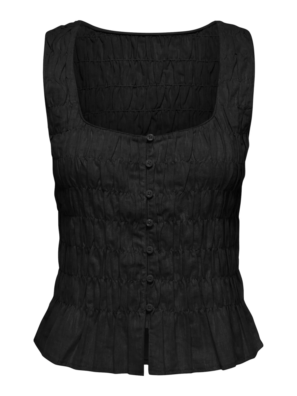 Blouse type: Klassieke blouse; Design: Gevoerde zoom/rand, Knop placket, Diepe snit/decolleté; Type sluiting: Knoopsluiting; Materiaal: Linnen; Halstype: Carréhals; Motief: Effen; Kraag: Zonder kraag; Soort bandjes: Brede bandjes; Details: Gedrapeerd; Extra's: Op staal naden, Met textuur; Pasvorm: Normale pasvorm; Armlengte: Mouwloos; Lengte: Normale lengte