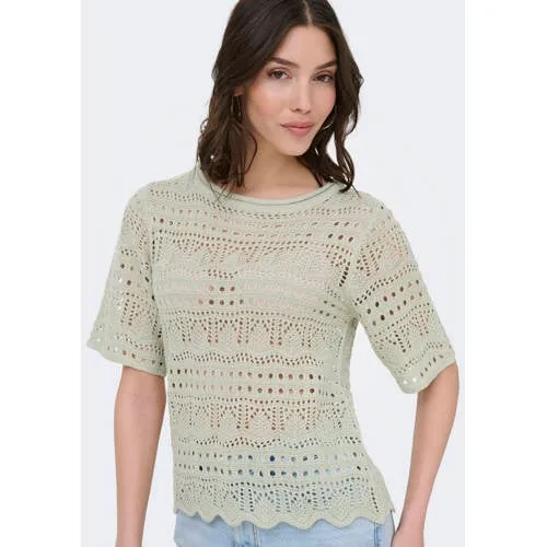 Fris, licht en toch knus, dat is de uitstraling van deze lichtgroene JDY Jdysun Lay pullover. De top heeft een fijne ajourbrei met ingebreid patroon, waardoor er een subtiel semi-transparant effect ontstaat. Ideaal voor het voorjaar of een frisse zomerdag, over een topje of bralette. De boothals legt het accent mooi op je halslijn en schouders en de korte rechte mouwen geven een moderne, luchtige look.Luchtig breisel met fijne details Lichtgroene effen kleur die makkelijk te combineren is met jeans, rokken of een nette broek Ajour en ingebreid patroon voor een speels, semi-transparant effect Boothals voor een vrouwelijke uitstraling rond de hals en schouders Korte rechte mouwen voor een frisse, moderne pasvorm Zachte gebreide stof die prettig aanvoelt op de huid Valt normaal volgens het maatadvies, waardoor je je gebruikelijke maat kunt kiezen Praktisch in onderhoud: wasbaar op 30 graden en lauw strijkbaarIdeaal voor je dagelijkse looksDeze Jdysun Lay top uit de 'Daily' collectie is gemaakt voor alledaagse outfits. Draag de pullover met een topje eronder voor een subtiele laagjeslook, gecombineerd met een hoge jeans of een comfortabele pantalon. De semi-transparante structuur laat je onderlaag net genoeg zien voor een speels effect.JDY: eigentijdse mode voor elke dagJDY staat bekend om modieuze items die goed aansluiten op het dagelijks leven. De collecties combineren toegankelijke trends met draagbare pasvormen, zodat je eenvoudig een garderobe opbouwt die past bij jouw stijl. Met deze pullover kies je voor een vertrouwd merk dat staat voor moderne, goed te combineren kleding.Een lichte, gebreide favoriet waar je het hele seizoen plezier van hebt.