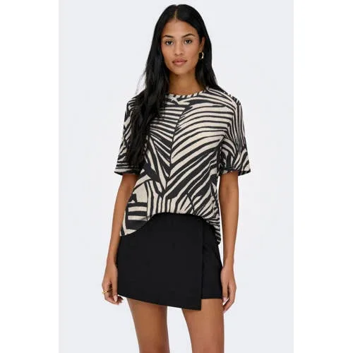 Voor een makkelijke everyday look is het JDY Jdydebbie dames T-shirt een fijne basis in je garderobe. De top heeft een zwarte ondergrond met een zandkleurige all over print en valt recht langs je lichaam. De ronde hals en korte mouwen geven een rustige, vrouwelijke uitstraling, terwijl de soepele stof prettig meebeweegt met elke stap die je zet.Details die je elke dag draagt Kleur zwart/zand met all over print voor een subtiele, maar aanwezige look Rechtvallende pasvorm die niet aftekent en mooi langs je lichaam valt Korte, rechte mouwen voor een luchtig gevoel, ideaal voor lente en zomer Ronde hals die comfortabel sluit en goed combineert met kettingen Zachte, soepele stof met een beetje stretch door 1 procent elastaan Geen sluiting, je trekt het T-shirt eenvoudig over het hoofd aan Onderhoudsvriendelijk: wasbaar op 30 graden en lauw strijkbaarMakkelijk te stylen voor elke dagDeze top uit de Daily collectie is een praktische keuze voor doordeweeks. Draag het op een zwarte broek voor een rustige look of combineer met een lichte jeans voor meer contrast. Door het rechte model past het T-shirt ook mooi in een rok of high waist broek.JDY, moderne stijl voor elke dagJDY staat bekend om modieuze items die goed te combineren zijn en passen bij een druk leven. De collecties volgen de trends, maar blijven tegelijk draagbaar en betaalbaar. Zo vul je je garderobe eenvoudig aan met tops en T-shirts die je vaak en met plezier aantrekt.Een comfortabele, gestylde basic die je zonder nadenken uit de kast pakt.