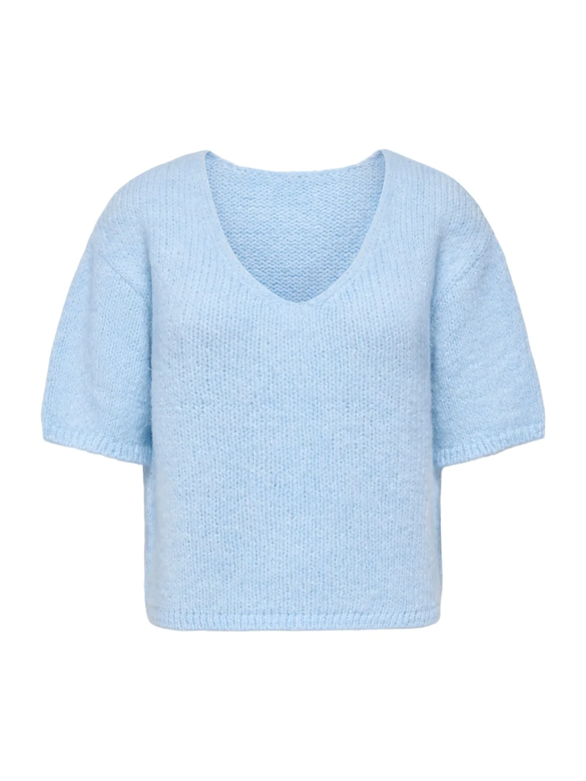 Design: Geribd ceintuurtje, Overcut schouder; Materiaal: Knitwear; Halstype: V-hals; Motief: Effen; Extra's: Fully fashioned, Met textuur, Voelt zacht aan; Pasvorm: Losse pasvorm; Armlengte: Halve mouw; Lengte: Normale lengte