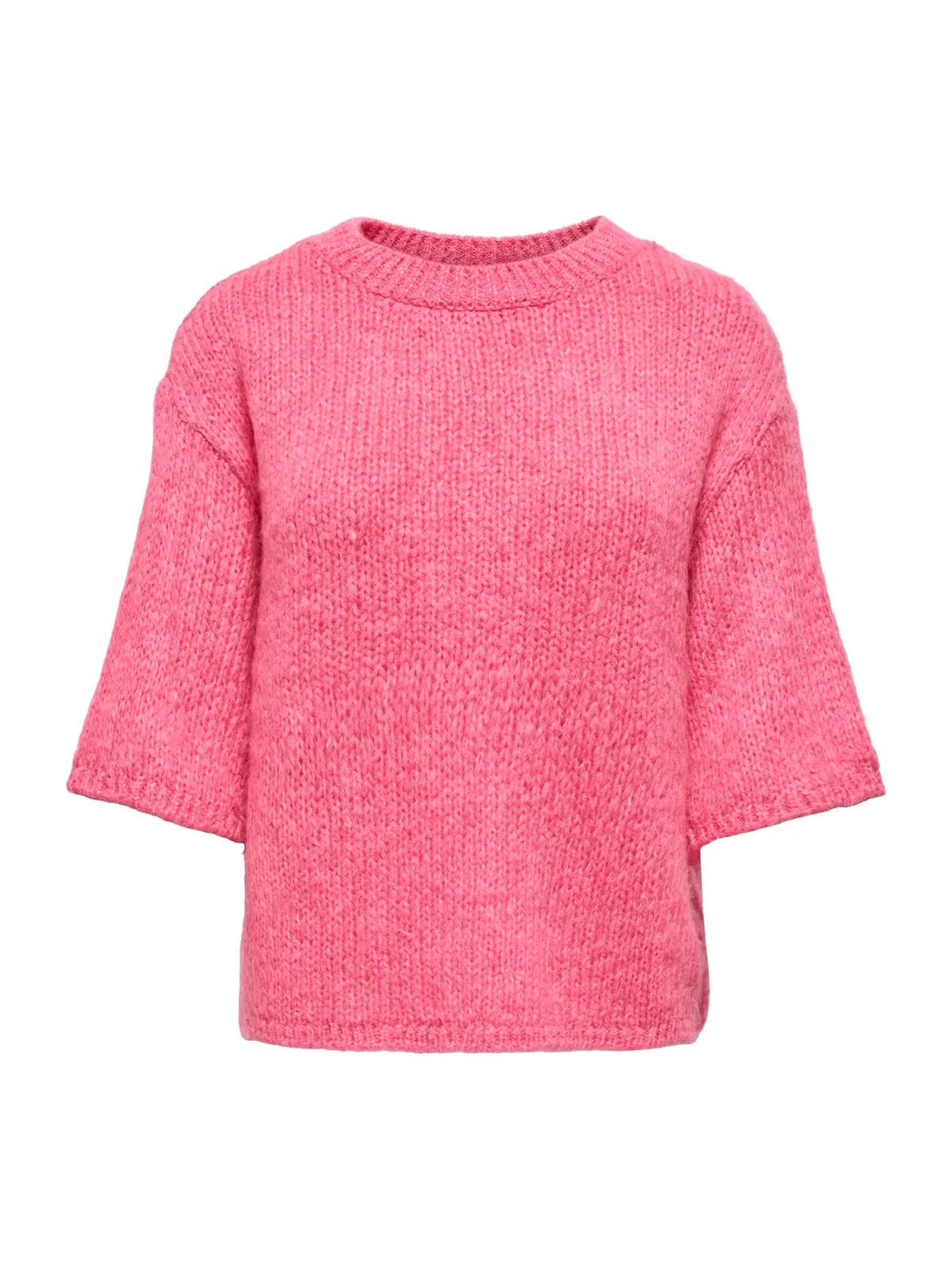 Design: Geribbelde kraag, Geribbeld gebreid, Overcut schouder; Materiaal: Knitwear; Halstype: Ronde hals; Motief: Mélange; Extra's: Met textuur, Voelt zacht aan; Pasvorm: Losse pasvorm; Armlengte: Halve mouw; Lengte: Korte pasvorm