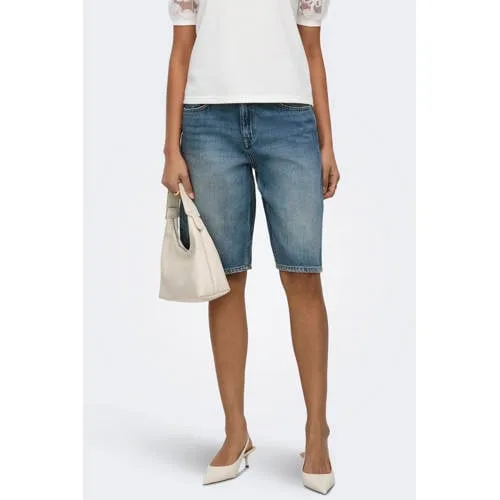 JDY wide leg regular waist bermuda short medium blue denim