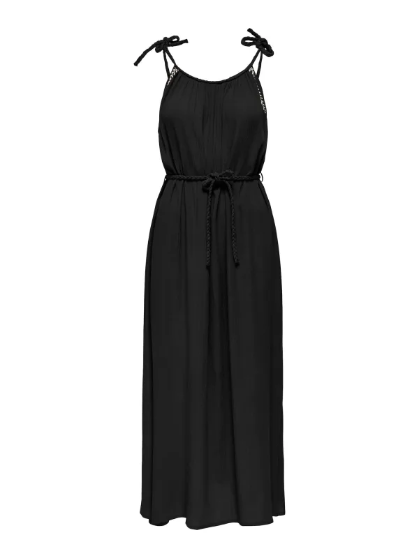 Design: Met band/snoer, Om te knopen/binden; Halstype: Ronde hals; Soort bandjes: Spaghettibandjes; Details: Franjes, Borduursels, Gedrapeerd; Extra's: Applicaties; Lengte: Lang/maxi; Snit: Getailleerd; Pasvorm: Losse pasvorm; Armlengte: Mouwloos