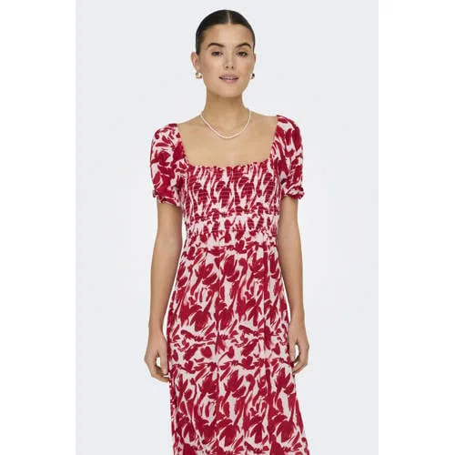 Deze jurk van JDY heeft korte mouwen en een vierkante hals. De jurk is gemaakt van polyester. Het item heeft een lange lengte en je draagt het prettig in de zomer of naar het strand.