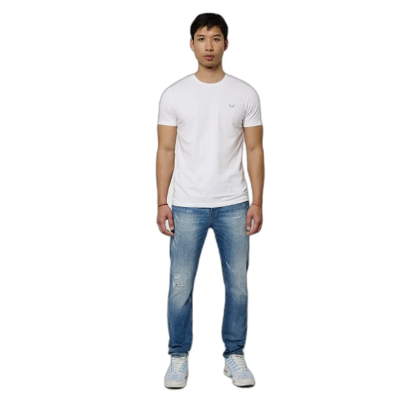 Verbleekte en destroyed jeansSlim fitStretchcomfortNormale tailleNormale kruisRitssluiting2 steekzakkenAangesloten dijen1 muntzakje met logoAangesloten benen2 achterzakken met dessinGeproduceerd met afdrukAangesloten onderopeningOnderhoudstip:Wassen op 40°Binnenste buiten wassenWassen met vergelijkbare kleurenOnze mannequin draagt maat 32US en is 1,85 m langToutes les substances utilisées dans le produit et pour l'emballage sont conformes à la régulation REACH