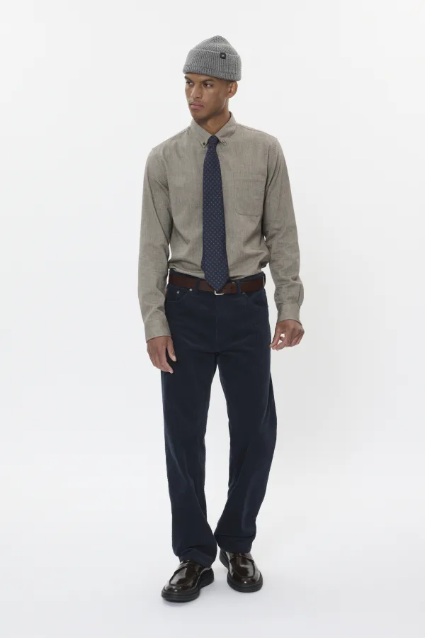 Corduroy broek met rechte pijpen, klassiek vijfzakkenmodel en zachte, structuurrijke afwerking. Riemlussen en knoopsluiting voor een tijdloze look.