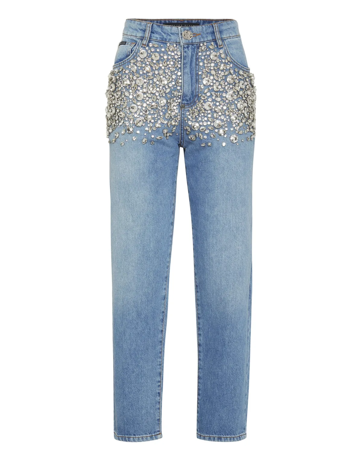 Verfraaid Wil je opvallen? Dan raden we je deze stone washed denim 5 pocket broek met unieke en kostbare details aan. Ontdek meer. Steengewassen denim De voorkant is bedekt met stras PP Hexagon op een saffiaanleren patch die op de achterkant is genaaid Metalen juweel enkele knoop Pasvorm: High-Rise Mom