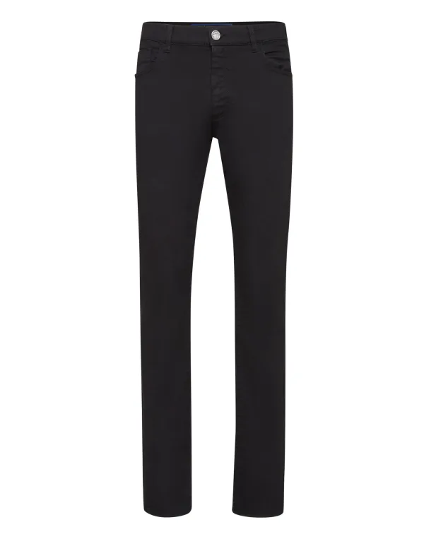Voeg iets casual en origineels toe aan je outfit. Wij raden deze stretch stone washed denim 5 pocketbroek aan met de Brand print op de tailleband. Op de achterkant is een speciaal label genaaid. Ritssluiting en de knoop in de taille is voorzien van het merkwapen. Pasvorm: Super recht. Onderkant: 18 cm.