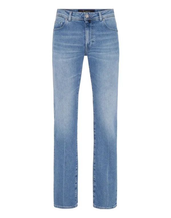 Add something casual and original to your outfit. We suggest these denim 5 pocket pants. Find out more. Stone washed denim Embroidered Monogram on the rear pockets Label with Brand sewn on the back of waistband Single metal button Seams and bar tacks in tone Fit: Regular