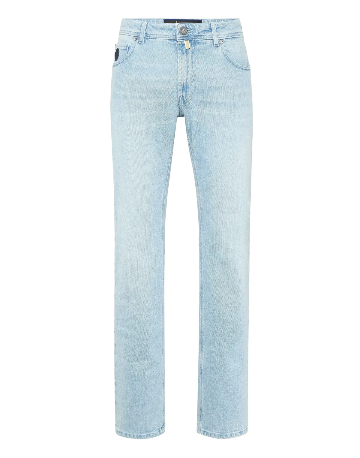 Add something casual and original to your outfit. We suggest these denim 5 pocket pants. Find out more. Stretch denim Used wash Single metal button Patch sewn on watch pocket Embroidery on the back Zip fly Insignia-shaped rivets Fit: Regular