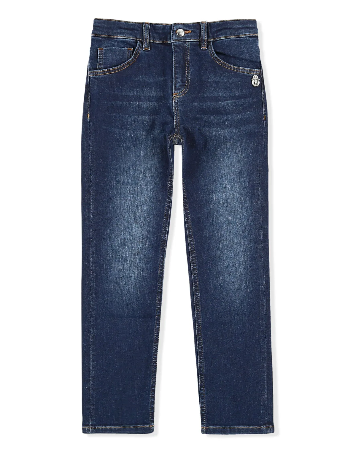The classic stone washed denim 5 pocket pants cannot miss even from a child's wardrobe. This version features single metal buttoning at waist. Contrasting hems on pockets. On the right rear pocket the brand's lettering. Fit: Regular.