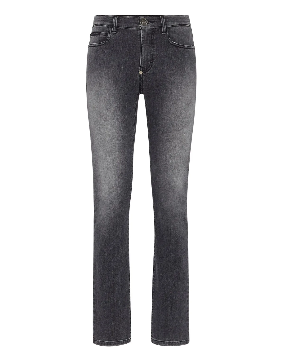 Stijl en gemak met deze stone washed denim broek met 5 zakken en basic pasvorm. Meer informatie. Stretch stone washed denim met geplaatste slijtage PP Hexagon op een saffiaan lederen patch genaaid op de rechter achterzak Enkele metalen juweelknoop Pasvorm: Regular