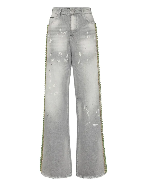 Verfraaid Style and orginality with these denim 5 pocket pants featuring a basic fit and sparkling details. Find out more. Denim Rhinestones application Logoed patch sewn on the right rear pocket Single metal button Fit: Skater