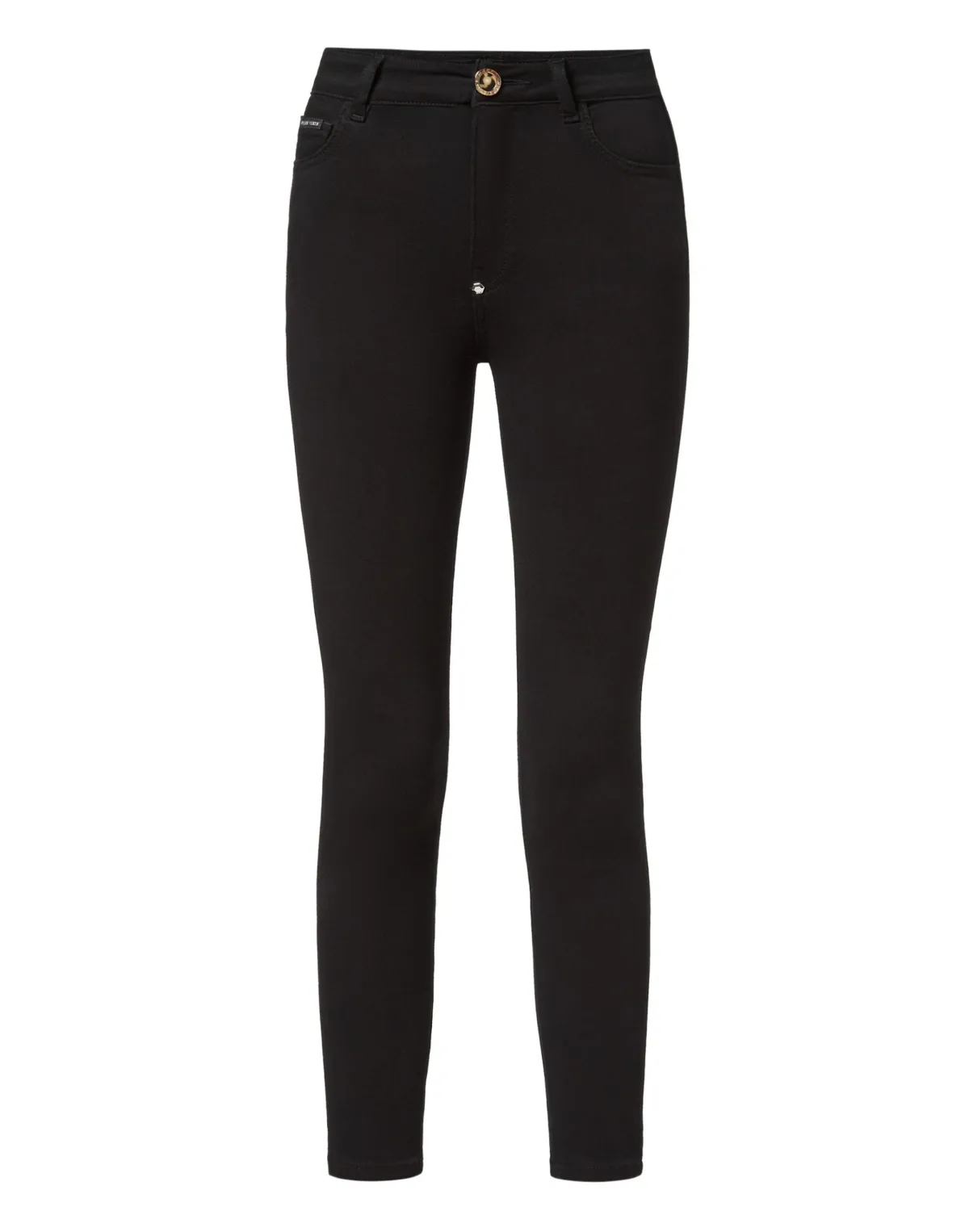 Stretch stone washed denim 5 pocketbroek met het lurex borduursel van Skull&Bones op de achterzakken. Enkele metalen knoopsluiting.Onderkant: 28 cm. Pasvorm: Skinny.