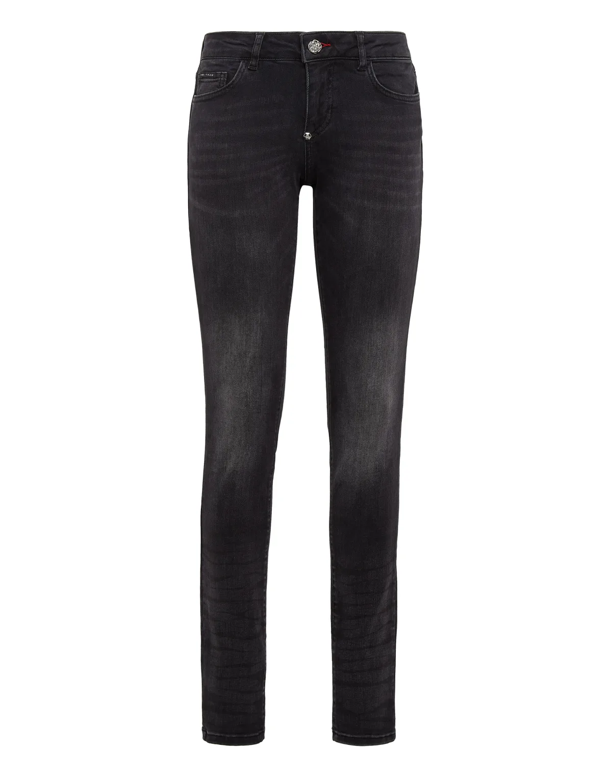 Stretch stone washed denim 5 pocket jeggings. Enkele metalen knoopsluiting.