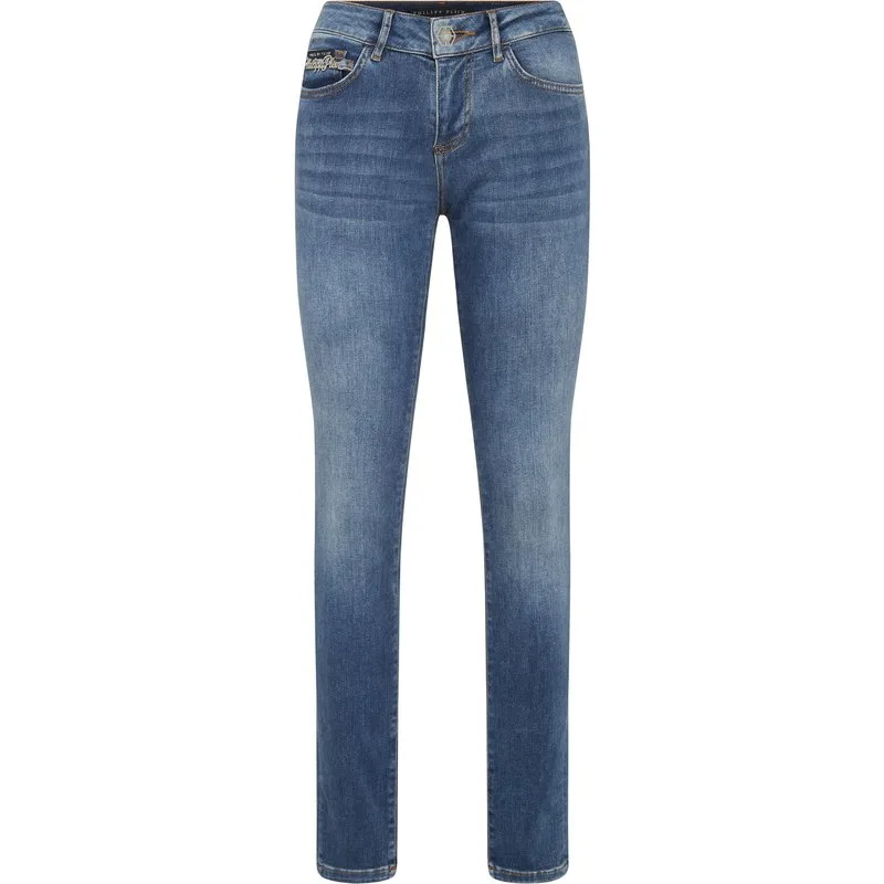 Style and originality with these denim 5 pocket jeggings featuring a basic fit and shimmering elements. Find out more. Stretch denim Rhinestoned patch at the right rear pocket Logoed patchsewn at the back Single metal button fastening Fit: Slim