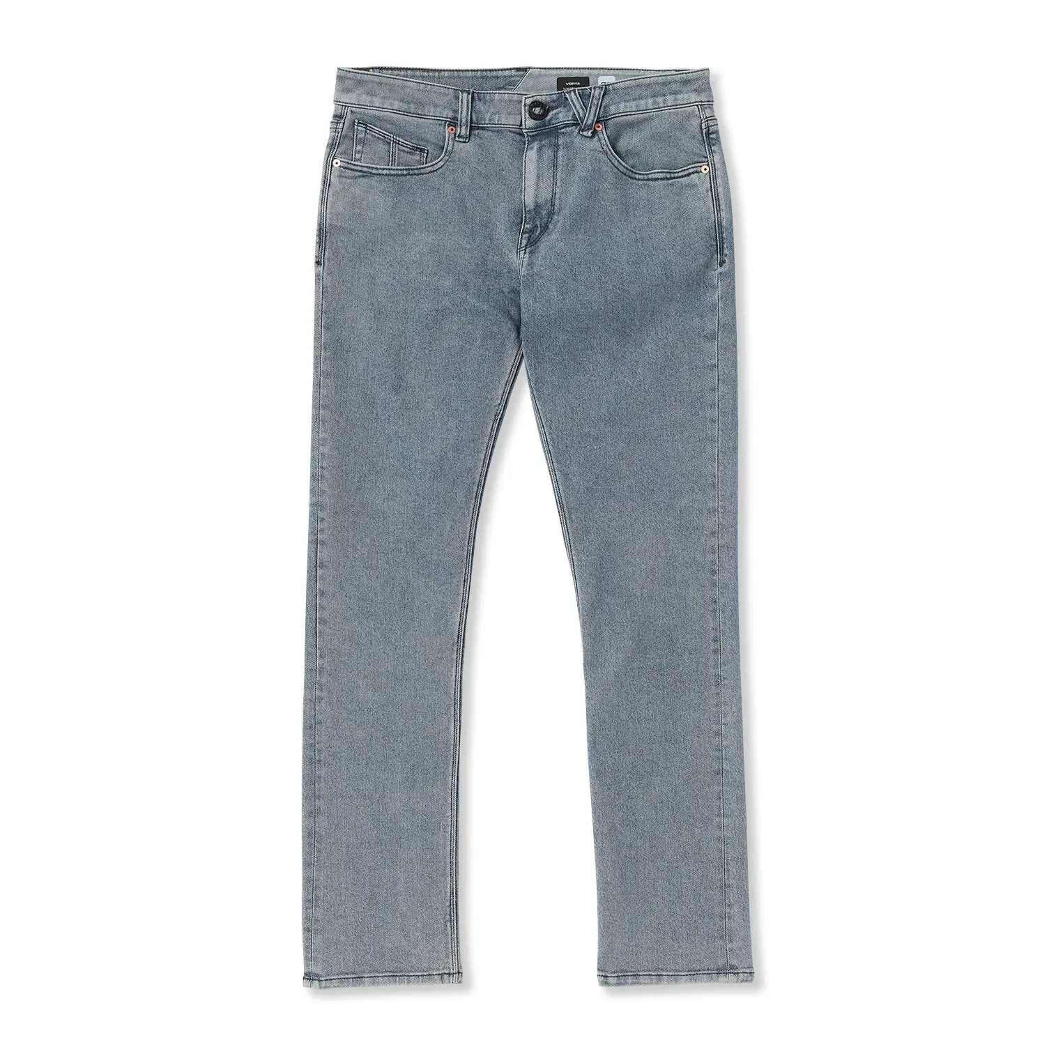Slim fit die onder de taille valt met rechte pijpen, pijpopening van 15", en een binnenbeenlengte van 32" - maat 32 x 32VOLCOM WATERAFSTOTEND - Vermijd steenzepen en wasverzachter / combineer de wasbeurten van size en enzyme om het waterverbruik te beperkenLichtblauwe indigo denim met een grijze toon en donkere grijze stikselsStijl en kenmerkende details van de jeans van merk Volcom
