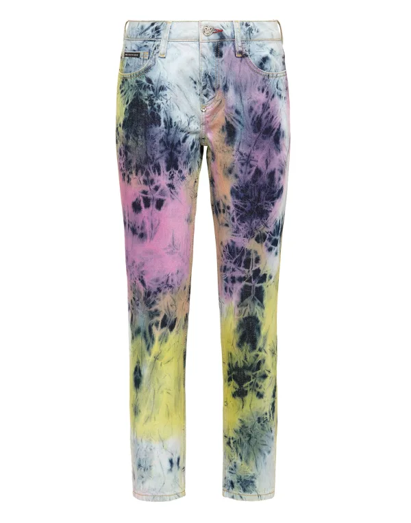 Broek van gebleekte stone washed denim met 5 zakken. Enkele metalen knoopsluiting. De patch van het merk is achterop de tailleband genaaid. Onderkant: 30 cm. Pasvorm: Boyfriend.