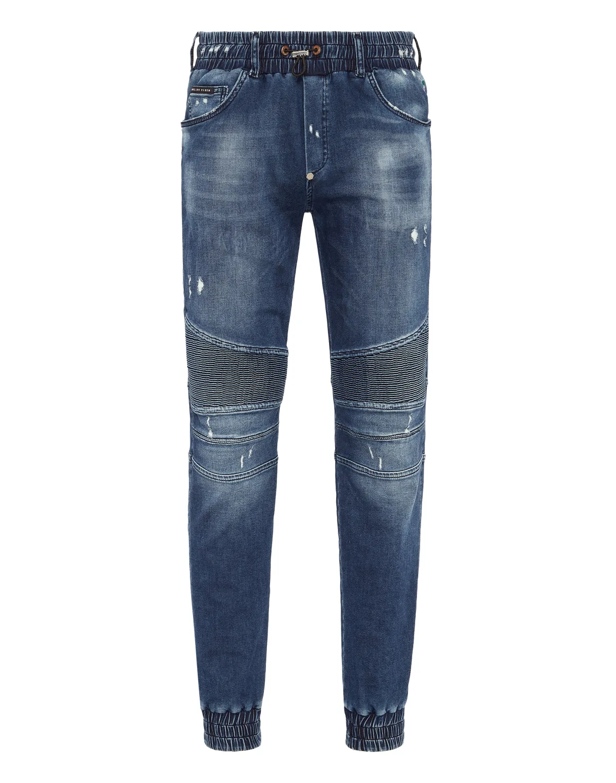 Stap uit de gebruikelijke routine en kies voor iets heel origineels zoals de five-pocket denim jogger-stijl broek. Stone washed denim met geplaatste slijtage Ribboord PP Hexagon op een saffiaan lederen patch genaaid op de rechter achterzak Elastische tailleband met trekkoord Elastische onderboord Pasvorm: Jogging