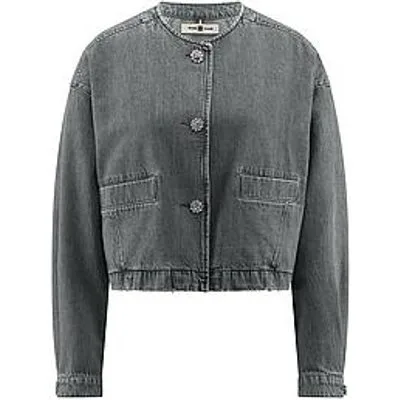 Jeansjack van RIANI in een nieuwe, trendy hoekige look met extra wijdte rond de aangeknipte mouwen en glitterknopen aan de manchetten en knoopsluiting. Ietwat korter model, past daardoor uitstekend bij outfits in laagjes-look. Met 2 strookzakken. Van 100% katoen. Lengte ca. 50 cm. Machinewasbaar. fijnwas tot 30°. chloorbleken niet mogelijk. koud strijken. chemische reiniging, veilig. drogen in de droger niet mogelijk. 38, 40, 42, 44, 46, 48