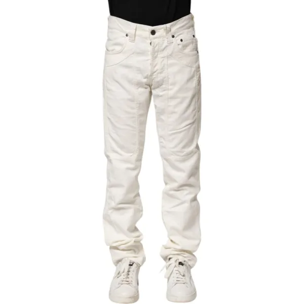 JECKERSON Prachtig gloednieuw met labels, 100% Authentiek JECKERSON heren denim jeans. Model: Rechte jeans Kleur: Wit Materiaal: 97% Katoen 3% Elastaan Rits- en knoopsluiting Logo details Gemaakt in Italië Zeer exclusief en van hoge kwaliteit vakmanschap