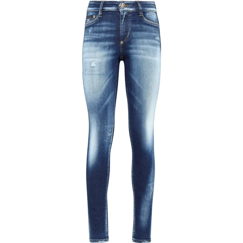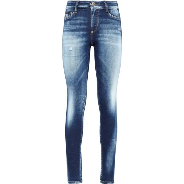 Laat je figuur zien met deze stretch stone washed denim 5 pocket jeggings. Dit kledingstuk is ontworpen om je lichaam vorm te geven. Geniet van de enkele juweelknoop in de taille en de PP Hexagon die op de rechterachterzak is genaaid. Gestikt met twee naalden.