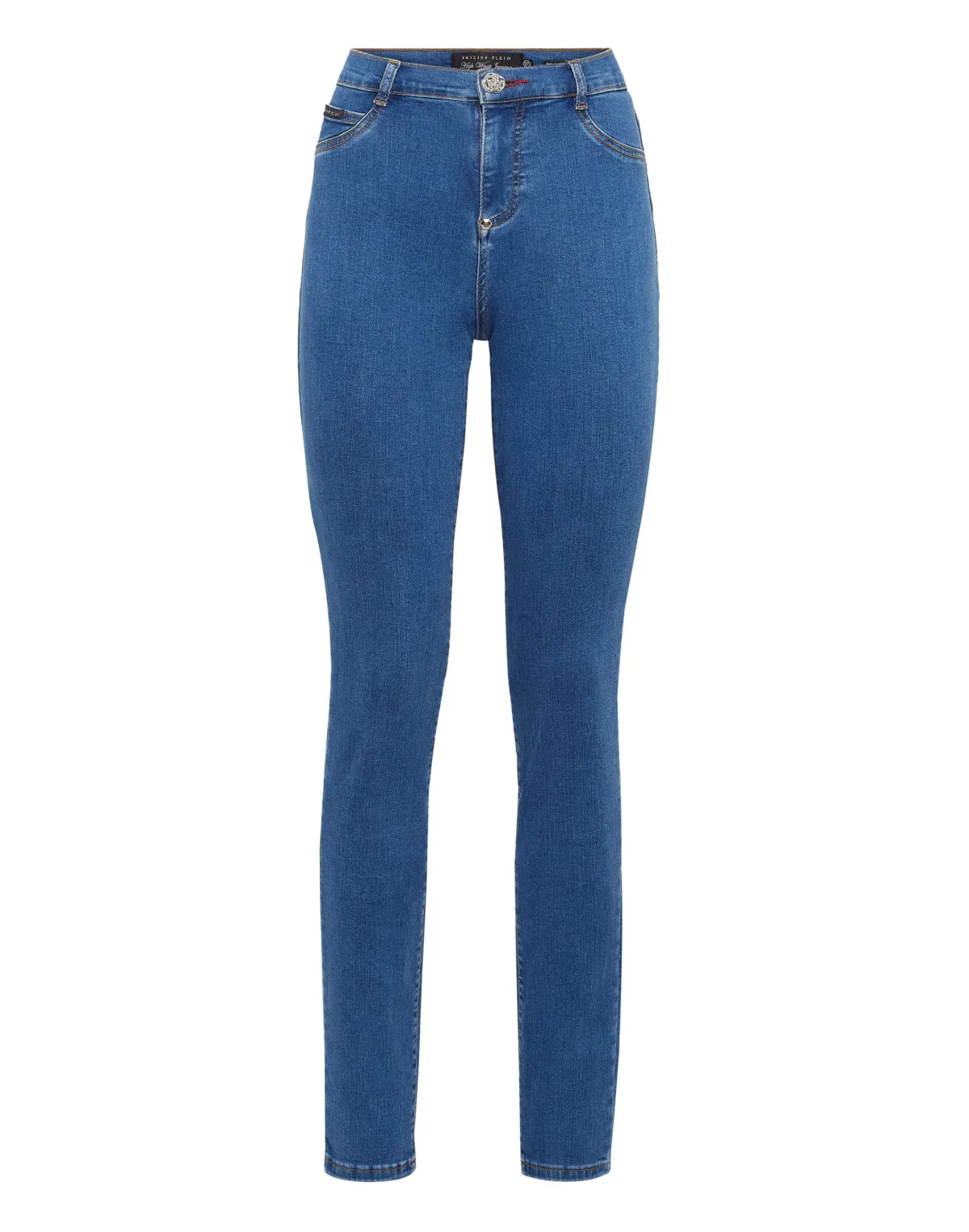 Stretch stone washed denim 5 pocket jeggings. Enkele metalen knoopsluiting.