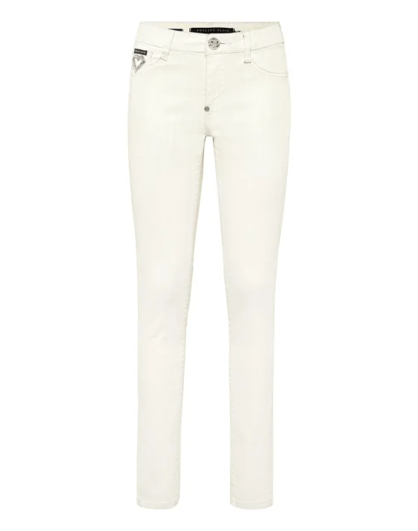 Verfraaid Stijl en gemak met deze denim broek met 5 zakken en basic pasvorm. Meer informatie. Stretch stone washed denim Bejewelled hartje op de horlogezak Enkele metalen zeshoekige knoop Pasvorm: Hoge taille