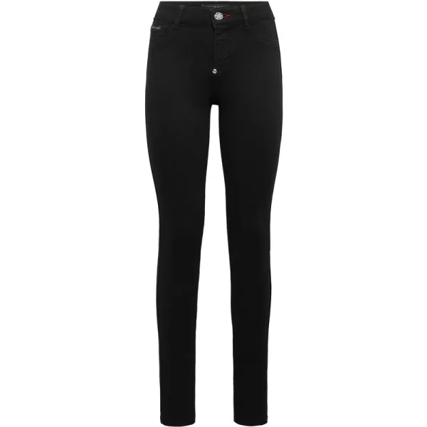Stretch stone washed denim 5 pocket jeggings. Enkele metalen knoopsluiting.