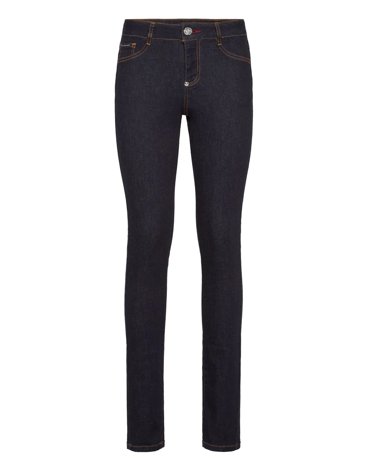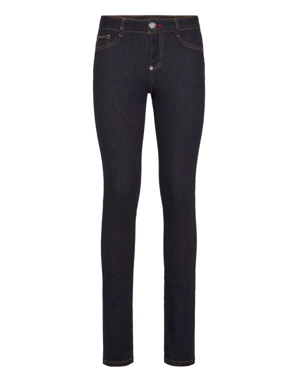 Stretch stone washed denim 5 pocket jeggings. Enkele metalen knoopsluiting.