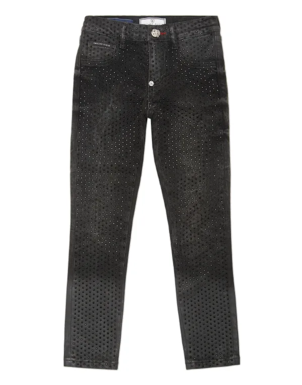 Verfraaid Deze jeggings combineren strak comfort met gedurfde luxe, verrijkt met strass versieringen die een lichtgevende rand brengen aan klassieke denim styling. Combineer ze met een statement top of tailored blazer voor een moeiteloos opvallende look. Premium stretch denim zorgt voor een flatterende, comfortabele pasvorm Strass detaillering voegt sprankeling en verfijnde textuur toe slank silhouet verbetert moderne, veelzijdige styling klassieke vijfzakconstructie met luxe afwerking perfecte balans tussen dagelijkse draagbaarheid en statement glamour
