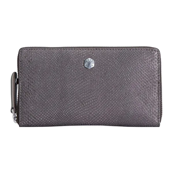 Design: Kaartvakjes, Muntenvakje, Schijnvak, Zichtvak, Allround rits, Vak voor mobiele telefoon, Ritsvak binnen; Materiaal: Glad leer; Extra's: Label plaatje, Reliëf structuur, Op staal naden, Stevige stof