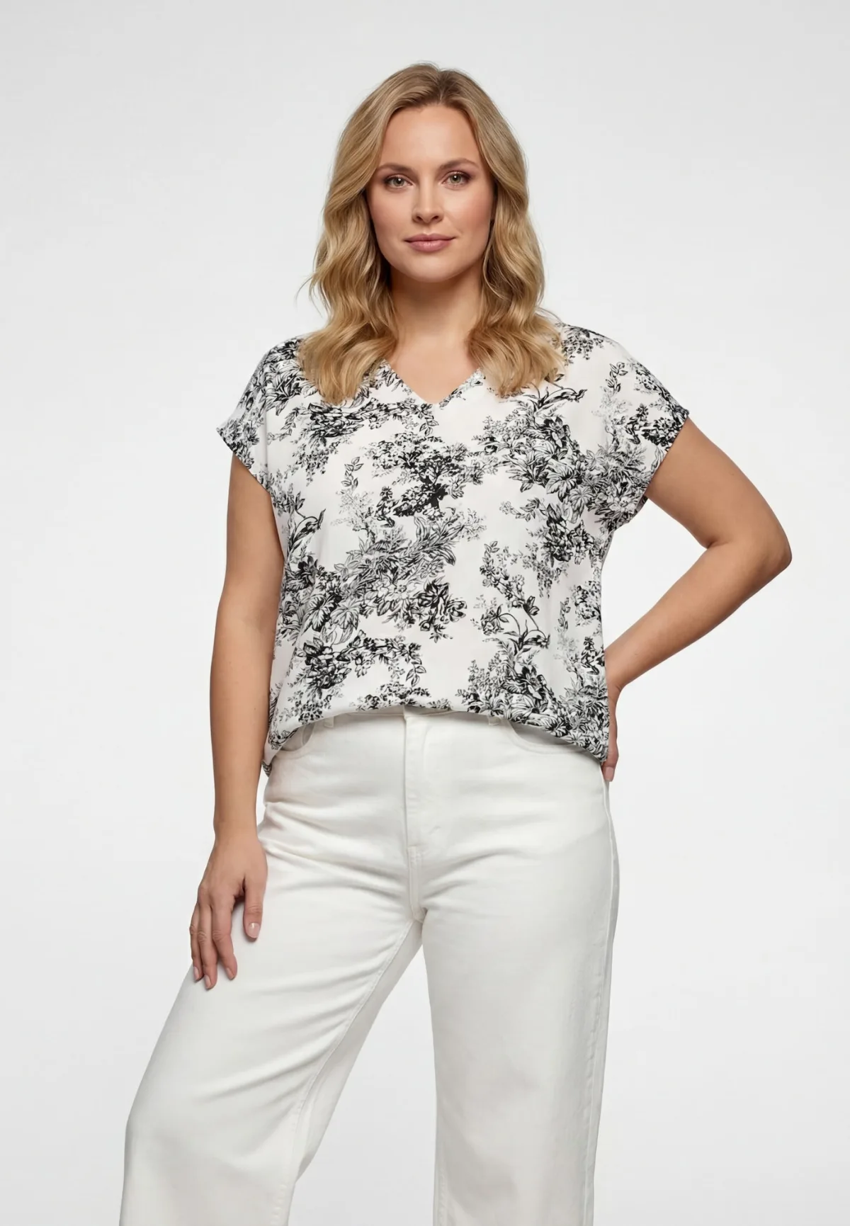 Blouse type: Blouseshirt; Design: Gevoerde zoom/rand; Type sluiting: Slip; Materiaal: Viscose; Motief: Bloemenprint; Kraag: Zonder kraag; Extra's: All-over patroon; Pasvorm: Normale pasvorm; Armlengte: Kwartmouw; Lengte: Normale lengte