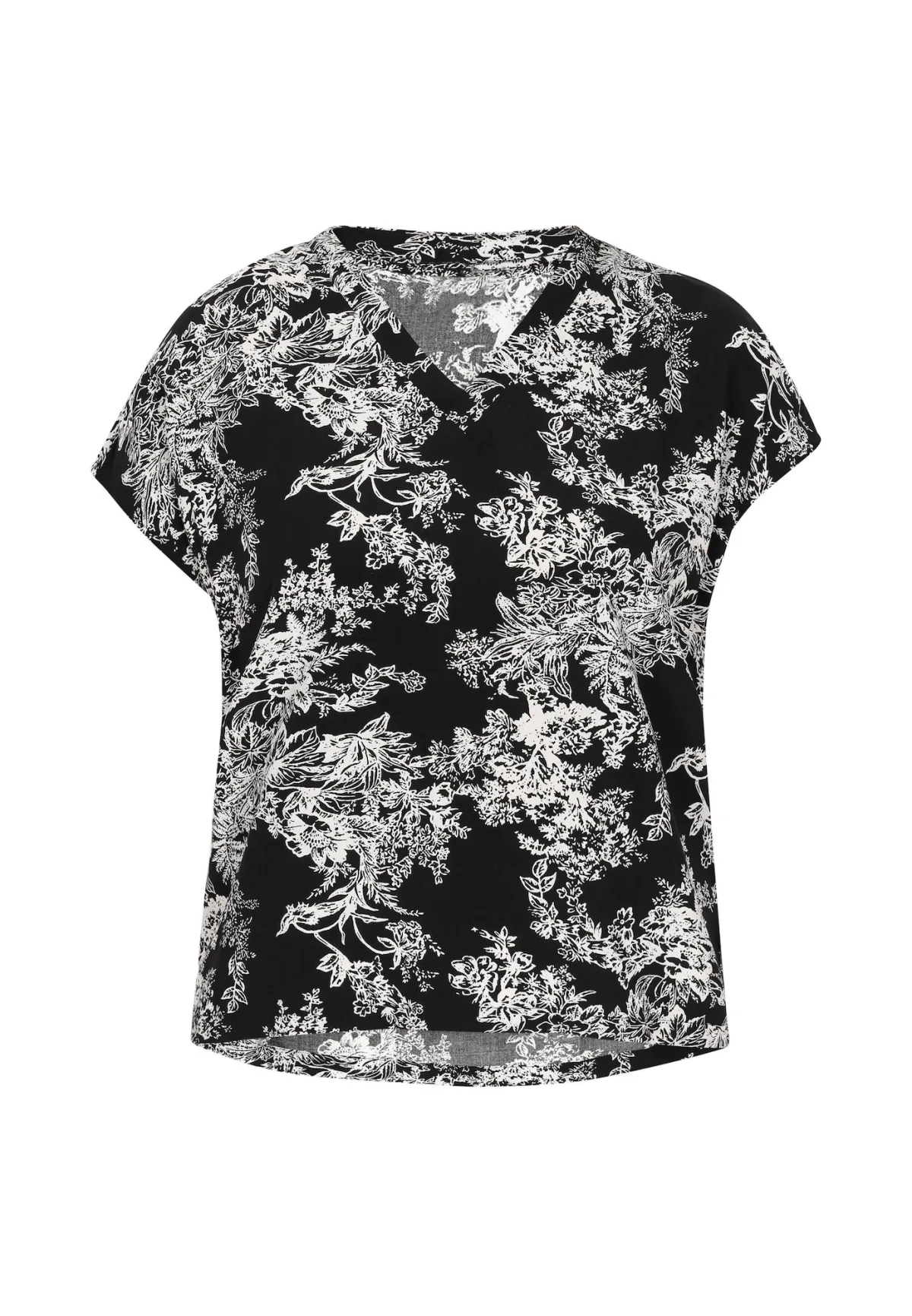 Blouse type: Blouseshirt; Design: Gevoerde zoom/rand; Type sluiting: Slip; Materiaal: Viscose; Motief: Bloemenprint; Kraag: Zonder kraag; Extra's: All-over patroon; Pasvorm: Normale pasvorm; Armlengte: Kwartmouw; Lengte: Normale lengte