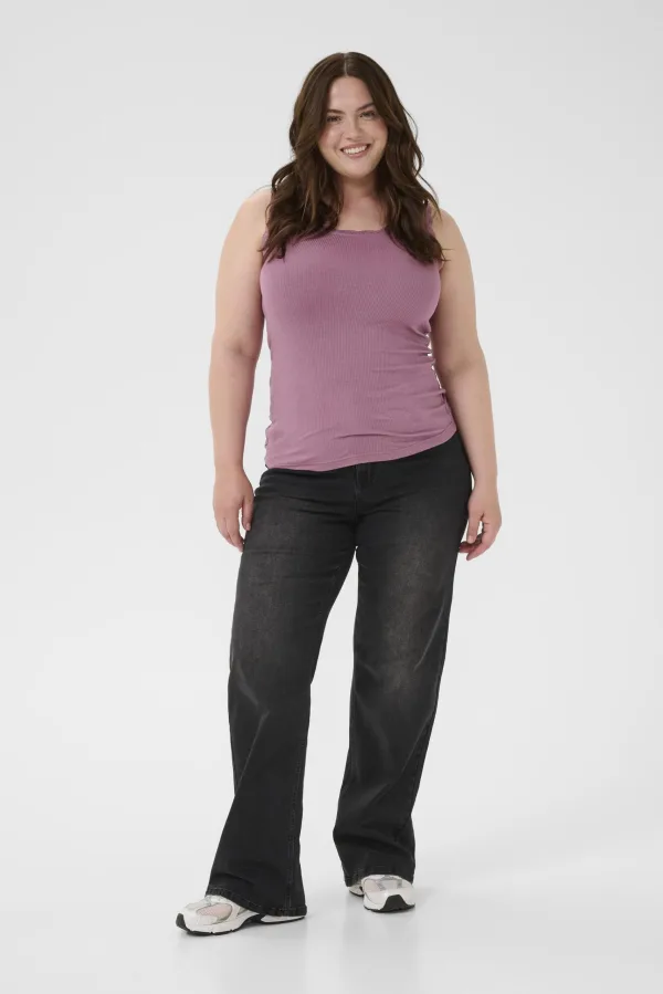Dit dames tanktopje geeft een flatterende pasvorm dankzij het ribmateriaal en de elegante kanten afwerking langs de halslijn. Het comfortabele en rekbare model is ideaal als basisstuk of solo te dragen, perfect voor elke dag.