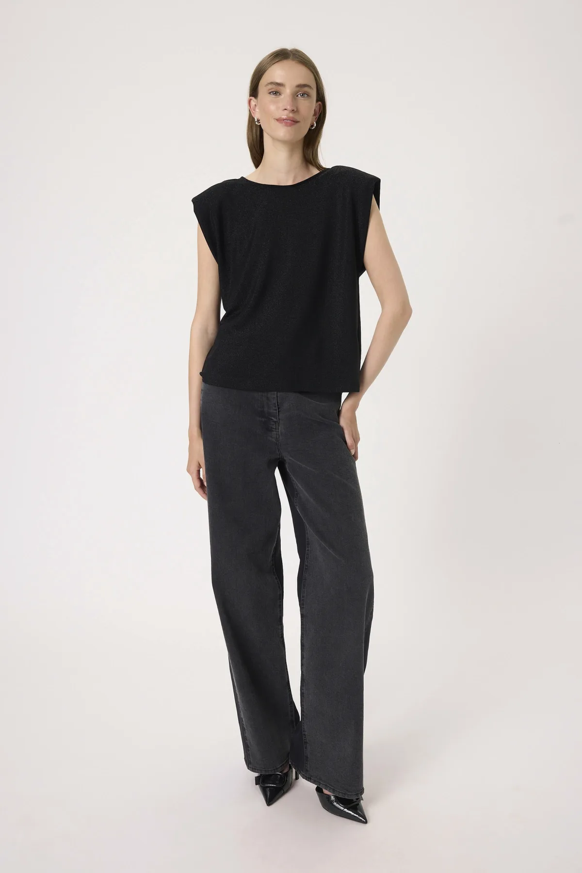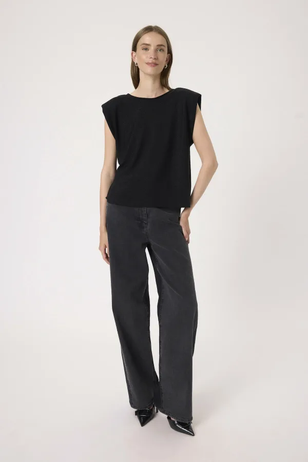 Dames mouwloze top met een ontspannen pasvorm voor dagelijks comfort. Schoudervullingen, ronde hals en rechte zoom zorgen voor een stijlvolle look.