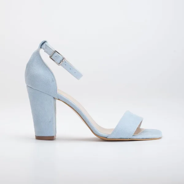 Blokhak sandalen met enkelbandje van premium veganistisch leer. Open teen design met veilige gespsluiting en 9cm hak voor elegante uitstraling. Handgemaakt met stevige blokhak constructie voor comfort.