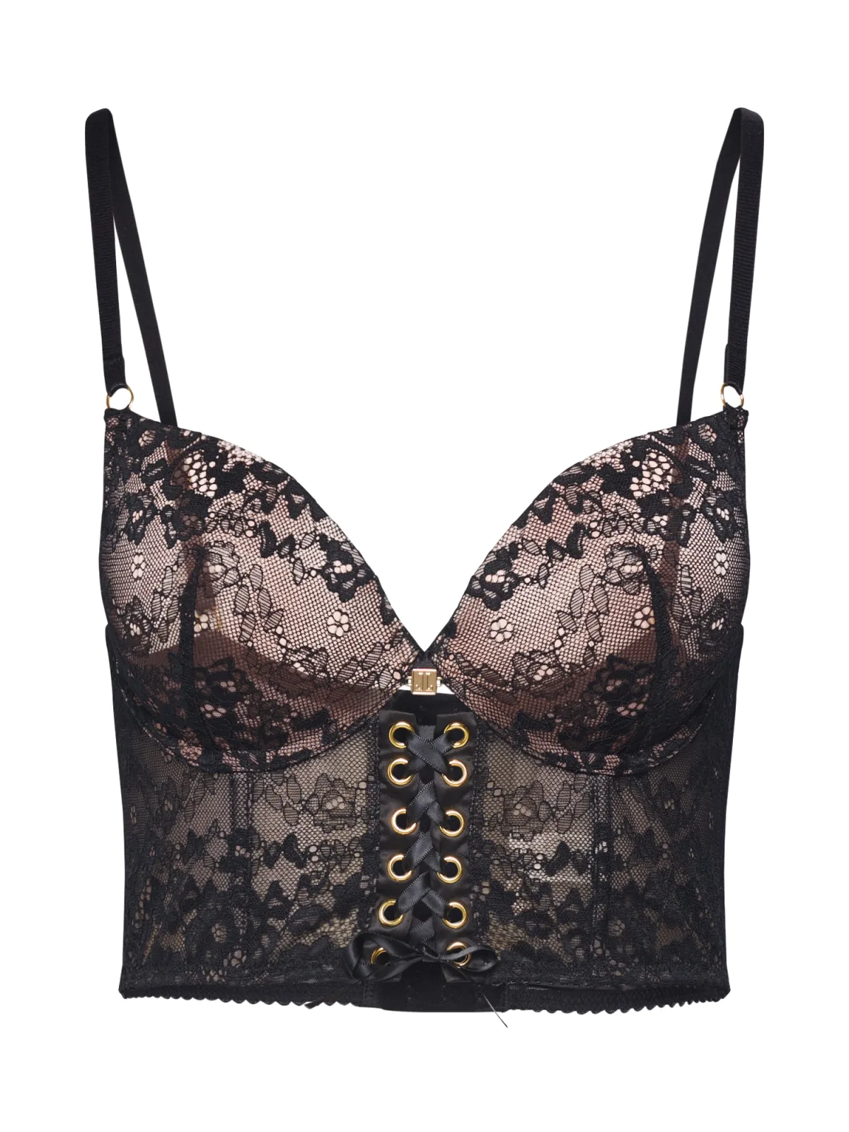 Cup soorten: Full cup bh; Soort bandjes: Normale bandjes; Bh/bikini type: Push-up; Beugel: Met beugel; Motief: Effen; Details: Kant; Extra's: Licht transparant, Verstelbare bandjes, Applicaties, Metalen oogjes; Pasvorm: Regular; Taillehoogte: Mid waist