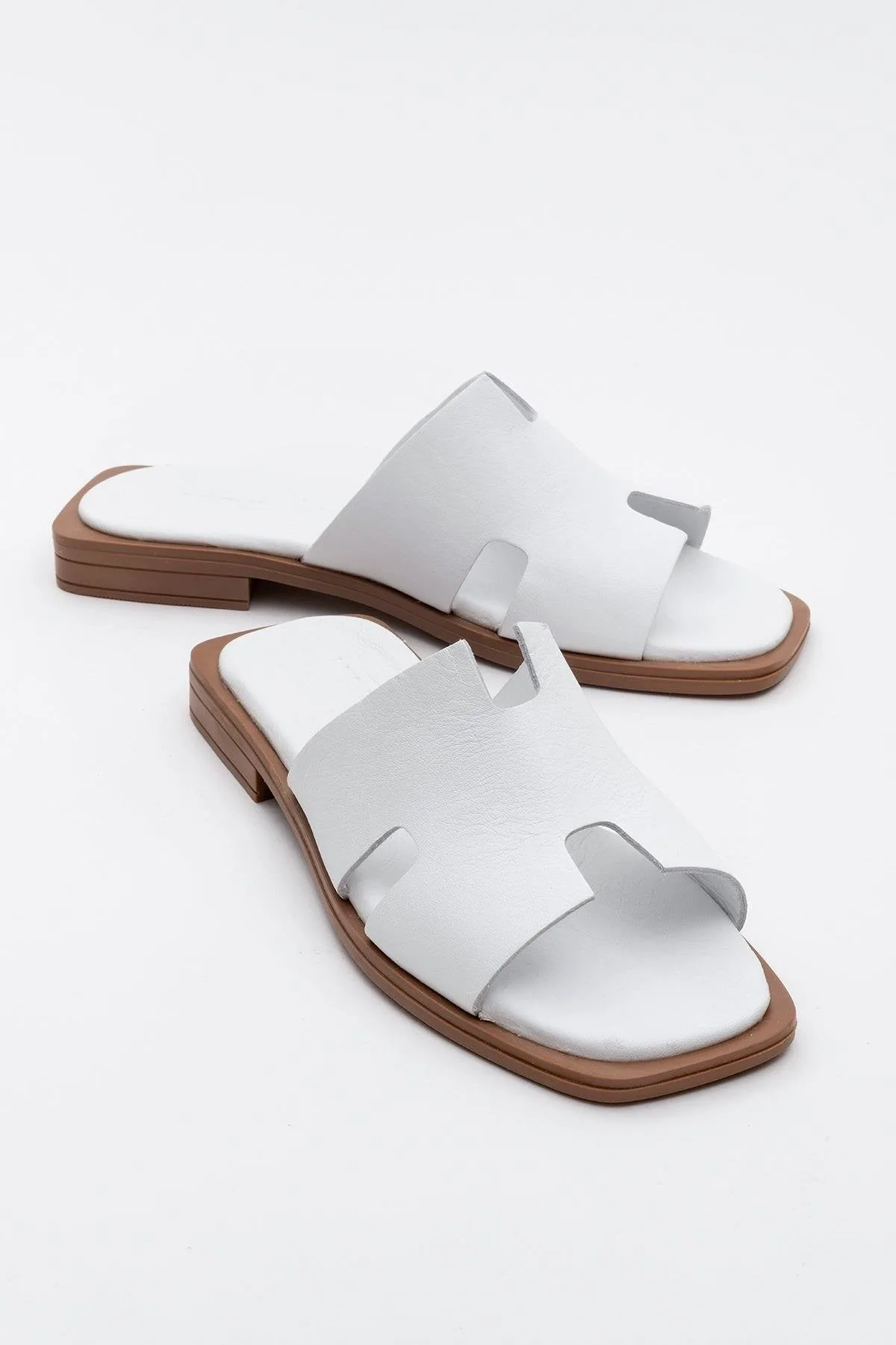 Block heel slide sandaal van hoogwaardig Italiaans nappaleer. Instapmodel met 2 cm hak en zachte leren binnenzool. Minimalistisch open-teen silhouet. Handgemaakt in Turkije.
