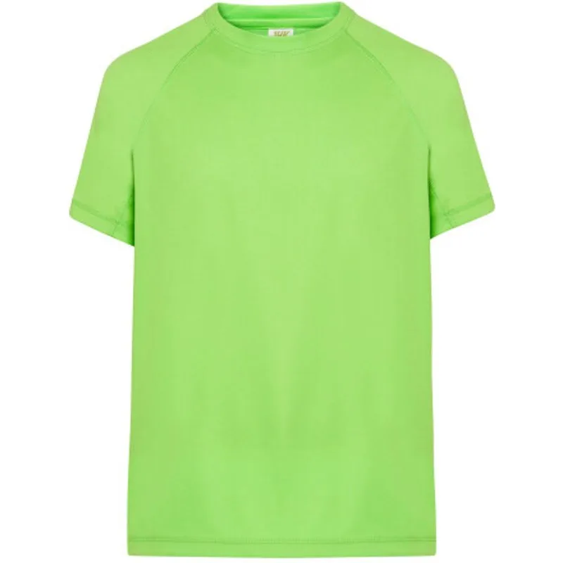 100% Polyester. Ontwerp: Eenvoudig. Hals: Crew Neck. Mouwtype: Raglan, met korte mouwen. Nekband, Zijnaden, afscheurbaar etiket. Geschikt voor: Slank. 130gsm. Duurzaamheid: Oeko-Tex Standaard 100 Gecertificeerd. S: 39 in. M: 41 in. L: 42,5 in. XL: 44 in. XXL: 45,5 in.